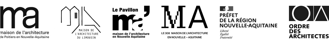 Un projet porté par les Maisons de l’Architecture de Nouvelle-Aquitaine : la Maison de l’Architecture de Poitiers, la Maison de l’architecture et du paysage du Limousin, le Pavillon de l’architecture à Pau et le 308 Maison de l’architecture à Bordeaux, avec le soutien de la Direction régionale des affaires culturelles de Nouvelle-Aquitaine et du Conseil Régional de l’Ordre des Architectes de Nouvelle-Aquitaine.